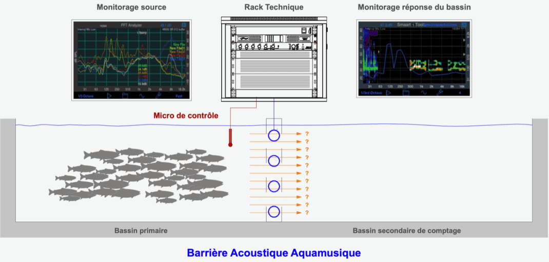 Objectif de l’expérience. Suite au premier test effectué en 2021 cette deuxième série a comme objectif de préciser les paramètres acoustiques optimums et quantifier l’efficacité de la barrière acoustique Aquamusique. Prémisses Selon les audiogrammes publié par: Jesus,J.Cortes,R. Teixeira, A. (a) Les sensibilités acoustiques des salmonidés et des cyprinidés se situent principalement entre 80 et 2000 […]